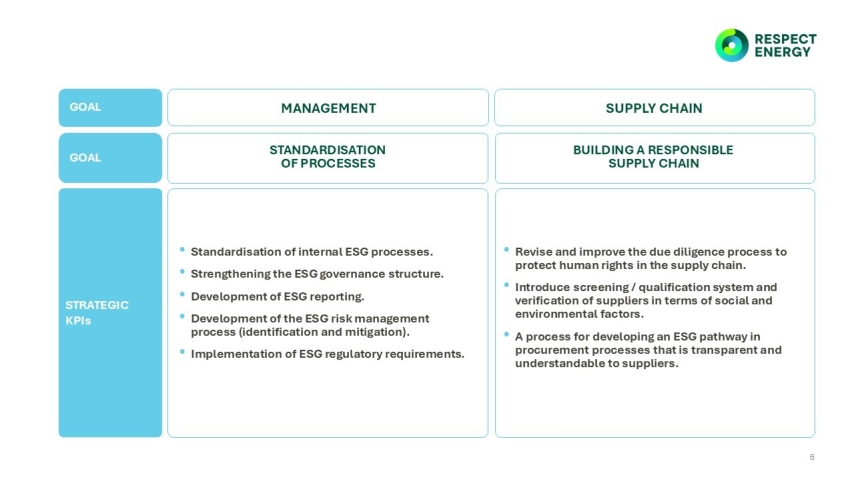 Un set de principii și standarde care ghidează activitatea organizației și susțin implementarea Strategiei de Sustenabilitate a Grupului Respect Energy.